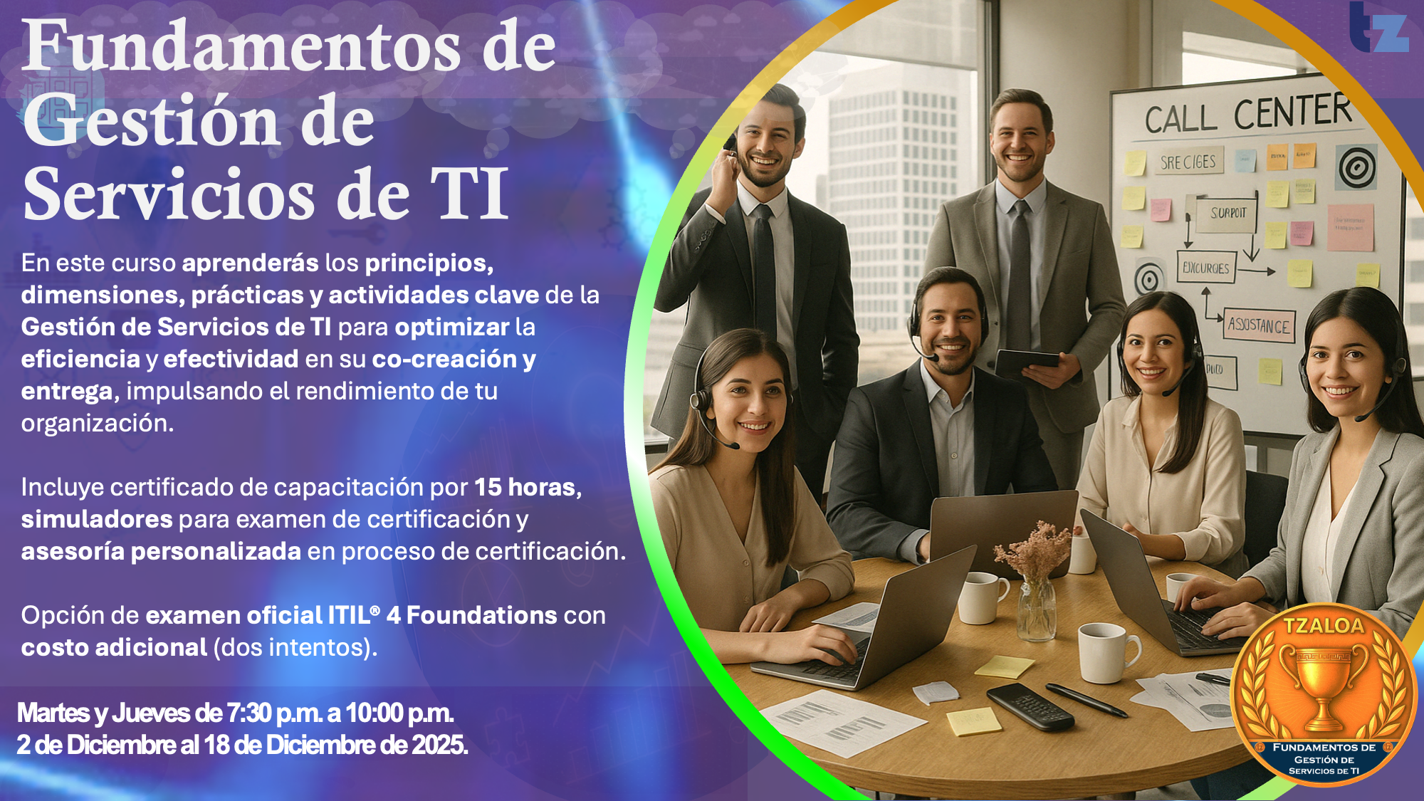 Objetivo General: Los participantes conocerán y entenderán los conceptos clave y las mejores prácticas de la gestión de servicios de TI, preparándolos para la certificación de Fundamentos de ITIL ® 4 y para mejorar la gestión de servicios de TI en sus organizaciones, enfocándose en el Sistema de Valor del Servicio, la Cadena de Valor del Servicio, las dimensiones del servicio, y la mejora continua.