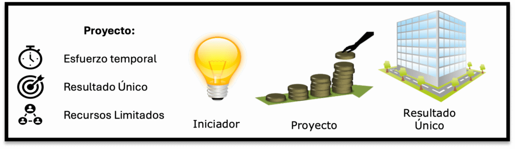 Un proyecto es un esfuerzo temporal que se lleva a cabo para crear un producto, servicio o resultado único.